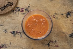 Очистите помидоры от кожицы и измельчите блендером до однородности.