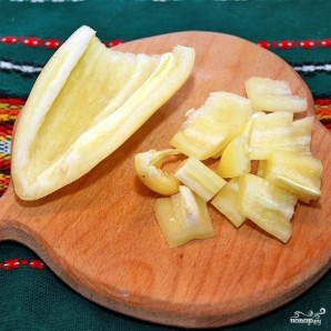 Подготовить все ингредиенты лучше заранее - лечо готовится быстро, поэтому в процессе приготовления нарезать остальные ингредиенты вы можете не успеть. Итак, перец очистим от семян и мембран, нарежем крупным кубиком.
