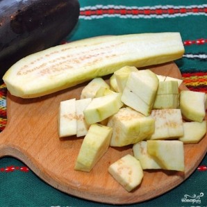 Баклажаны очищаем от кожуры и нарезаем крупными кубиками.