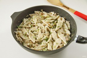 Add the boiled dough pieces, mix and heat everything together for a few minutes.