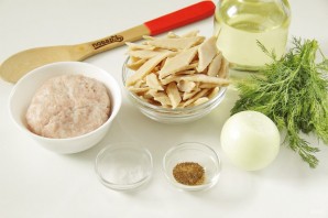 The dough should be prepared in advance. You can make it specifically for this purpose, or you can use leftover dough from making dumplings, manty, or vareniki. Any dumpling dough can be used. I do it this way — I combine egg, salt, water, and vegetable oil. I beat everything with a fork and, gradually adding flour in portions, knead a soft dough.