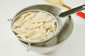The recipe won't take much time. It's perfect when you don't have time to stand by the stove for long, yet need to feed your family quickly, deliciously, and heartily. Of course, this assumes the dough has been prepared in advance and only needs to be boiled before serving. You can add garlic, mushrooms, or any seasonal vegetables to the filling—there's plenty of room for creativity here. Even though the recipe is lazy, the result is incredibly tasty! Give it a try. Serve hot.