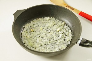Meanwhile, sauté the onion, finely diced, in a skillet until soft.