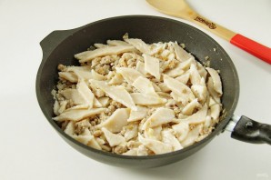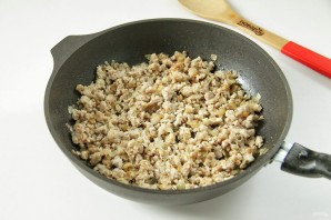 Add the minced meat, salt, and your favorite spices to the onion. Fry everything together until fully cooked.