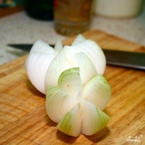 Под острым углом делаем надрезы на нашей луковице, формируя лепестки. Для наглядности смотрите на фото.