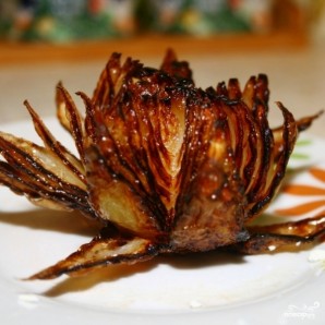Идеально к столу и к напиткам. Луковая роза - это конечно не бутерброды с красной икрой, но тоже весьма вкусная закуска, которая особенно хорошо смотрится на пикниках и идет под, например, шашлык. Себестоимость закуски минимальная, однако получается она не только оригинальной, но и вкусной - лук отдает всю свою горечь и получается немного сладковатым. Словом, луковая роза - это еще одна оригинальная кулинарная идея в вашу копилку :) Закуска готова. Подавайте сразу.