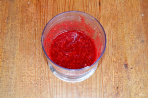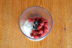 Combine the raspberries with sugar and blend into a purée. A blender is convenient to use for this.