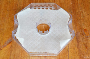 I will be drying the marshmallow in a dehydrator. The tray needs to be lined with parchment paper, with a circle cut out in the center.