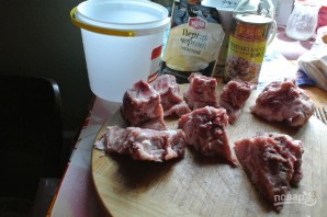 To prepare the marinade, mix teriyaki sauce with honey and add a little pepper. Place the pieces of meat into a container for marinating and pour the marinade over them. Mix by hand to ensure the marinade coats all the meat, then refrigerate. It's best to marinate the meat overnight.