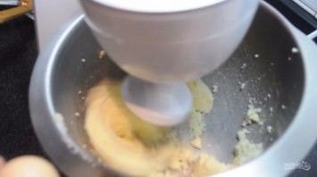 1. Размягченное сливочное масло разотрите с сахаром с помощью миксера. Добавьте по одному яйца, не прекращая взбивать. Небольшими порциями влейте молоко, постепенно взбивая все до однородной массы.