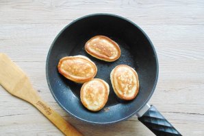 Обжаривайте оладушки с обеих сторон до готовности, до румяной корочки.
