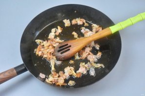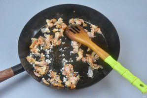 Add the minced garlic to the bacon and fry for another couple of minutes.