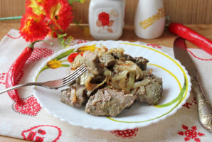 The recipe won't take much time. Frying beef liver is very simple. However, to make it tender, soft, and juicy, you need to know a few nuances. Often we are advised to place liver pieces on a hot pan and quickly sear them over high heat. After such cooking, it won't be tough, but if you don't like "rare" meat, this method won't suit you. The liver won't cook through and will remain red or pink inside. I suggest my own method. I place the liver pieces on the pan, cover it with a lid, and cook over the lowest possible heat, turning them from side to side. I avoid browning them too much on the outside, and thanks to the low heat, they cook thoroughly inside. Season the liver with salt only when it's fully cooked. Serve hot.
