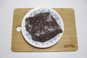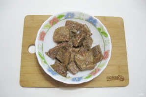 Remove the ducts and cut the liver into pieces 1-1.5 cm thick.