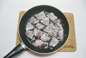 Coat the pieces of liver in flour and place them on a hot skillet with oil.