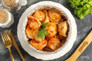 Если у вас есть в наличии термос для еды или фольгированная форма с крышкой, то выложите в нее приготовленное блюдо. Сразу же закройте его крышкой. В таком виде пельмени можно брать с собой на пикник, в поход. Тепло от горячих пельменей сконденсируется внутри термоса или формы и они как раз дотомятся до готовности. Поэтому очень важно их не переварить, иначе они потом превратятся в кашу!