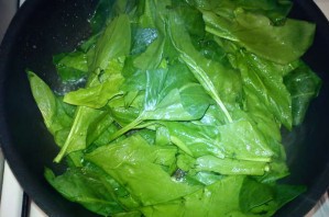 1. Шпинат промойте, обсушите, а затем потомите несколько минут на сковороде (с добавлением сливочного масла).