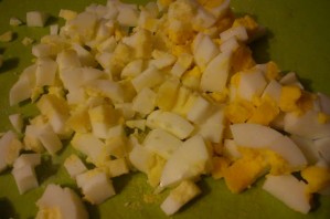 3. Яйца варим вкрутую, очищаем и нарезаем небольшими кубиками.