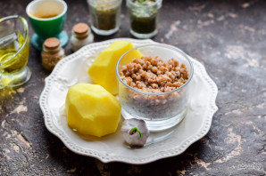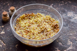Peel the potatoes and grate them on a medium grater. Add the potatoes to the buckwheat.