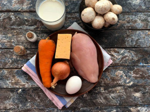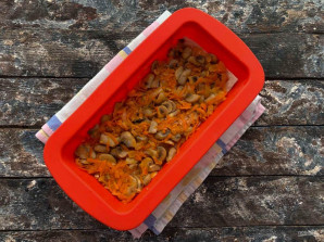 Finely chop the onion, grate the carrot on a medium grater. Add the vegetables to the mushrooms, mix and fry for 8-10 minutes.
