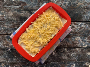 Sprinkle with grated cheese and place another layer of lavash on top.