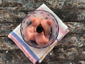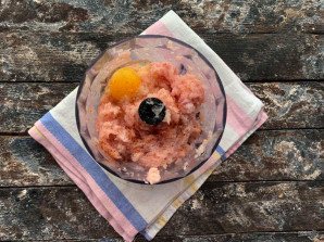 Place the chicken fillet in the blender bowl and grind until smooth.