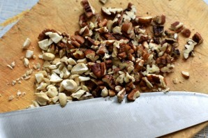 Chop the nuts coarsely. You can use absolutely any nuts, or mix two or three types. I'm using walnuts and a few cashews.