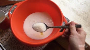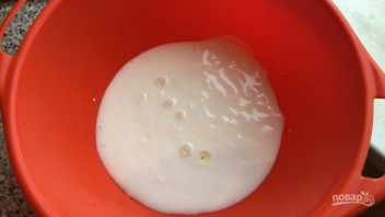 1. Подогрейте немного кефир и влейте его в миску, не используйте холодный.