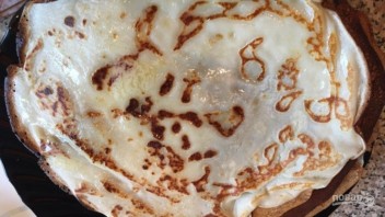 5. Перед выпечкой дайте тесту постоять 7-10 минут, чтобы мука немного разбухла. Разогрейте сковороду и выпекайте блин.