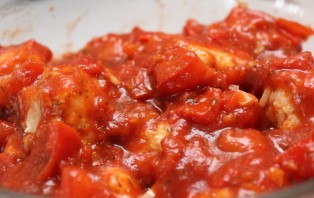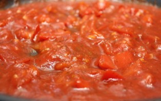 4. Wash the tomatoes, cut them into small cubes, and place them in a frying pan. Fry until a smooth sauce forms, seasoning slightly with salt and pepper. For a richer color, you can add a little tomato paste, as well as your favorite spices for flavor.