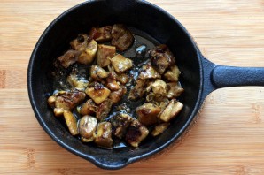 At the same time, sauté the white mushrooms in clarified butter until cooked through.