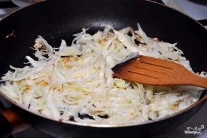 First, finely chop the cabbage and fry it in a pan until golden brown.