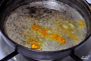 Then, in another skillet, lightly fry the curry in oil.