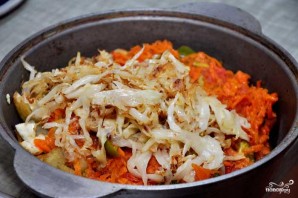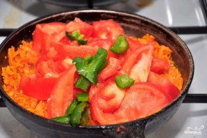 When the carrots are half-cooked, add coarsely chopped tomatoes and pepper.
