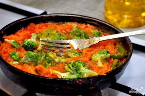 Mix everything and add broccoli. Slightly increase the heat and sauté, stirring constantly.