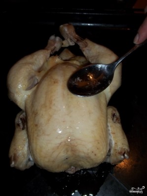 Bake the chicken in a preheated oven at 200 degrees for about 45-60 minutes, until fully cooked.
