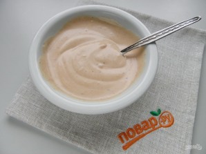 For the sauce, mix mayonnaise with ketchup and a pinch of black pepper.