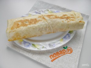 Fold it into a wrap, making sure the sides are sealed. Try to roll the shawarma tightly and place it onto a clean, dry skillet (a grill, if available, would be the best option) for a few minutes until golden brown on both sides.