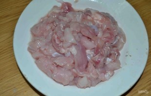 2. I wash the chicken meat and dry it with a paper towel, then slice it as thinly as possible.
