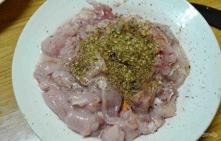 3. Transfer the meat to a bowl, add all the spices, mix well so that they evenly coat all the pieces.