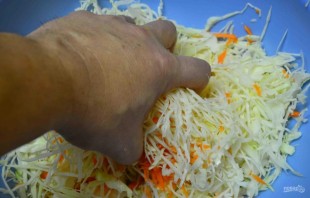 7. I transfer the chopped cabbage and carrots to a bowl, add salt, mix and let sit for a few minutes.