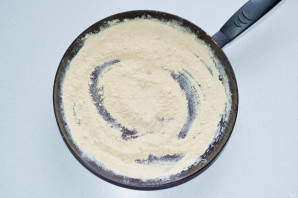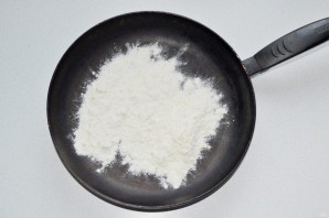 Place the flour on a dry skillet and set over medium heat. Toast, stirring constantly, until golden brown.
