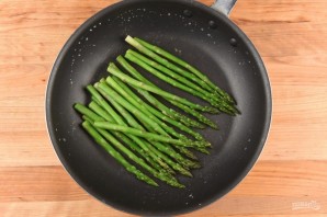 5. After that, sauté the asparagus with garlic in a pan, adding water. Cook for 3 minutes.