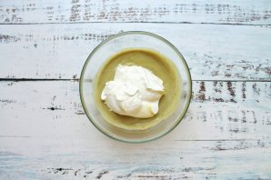 Whip the cold cream until fluffy and add it to the bowl with avocado and condensed milk. Gently mix until smooth.