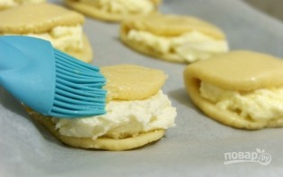 6. Взбейте ранее отложенную половинку желтка с ложкой воды или молока. Смажьте с помощью кисточки "Сочники" и отправьте в духовку. Выпекайте до румяности минут 20. Перед подачей присыпьте сахарной пудрой.