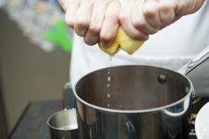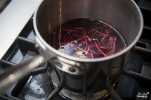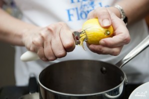 1. In a saucepan, mix pomegranate juice and sugar. Place over low heat. Add the zest of one lemon to the saucepan.