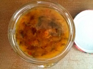 7. Place into sterile jars. Pour vegetable oil on top, enough to cover the sauce. Seal with sterile dry lids. Store the finished sauce in a cool place.