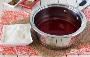 Add sugar to the juice. Place the sauce over heat and warm until the crystals dissolve.
