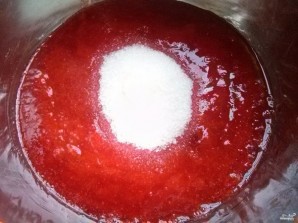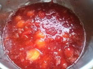 Add sugar and salt to the plum puree. Be sure to taste it for sweetness now, as plums become very sour during cooking! Add more sugar if needed. Simmer over low heat for 5 minutes, stirring.