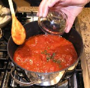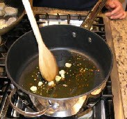 добавьте анчоусы и обжаривайте до того как чеснок начнёт менять цвет. Не дайте пригореть чесноку. При обжаривании перемешивайте ингредиенты очень быстро, чтоб анчоусы не сгорели.